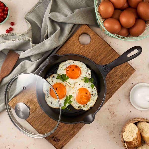 Deze Victoria Glass Lid 20 cm With Stainless Steel Knob is exclusief ontworpen voor Victoria skillets en pannen en sluit perfect aan op het gietijzer. Let op: de deksel past niet op pannen van andere merken.